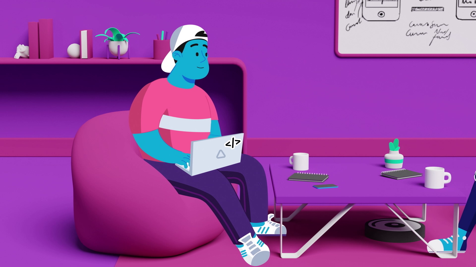 We decided to go with colorful 3D scenarios and several 2D characters to show how it helps devs and testers. All characters with different personalities and workplaces. The colorful scenarios help make the characters pop while showing the interaction between the characters and the tool's features in a playful way.