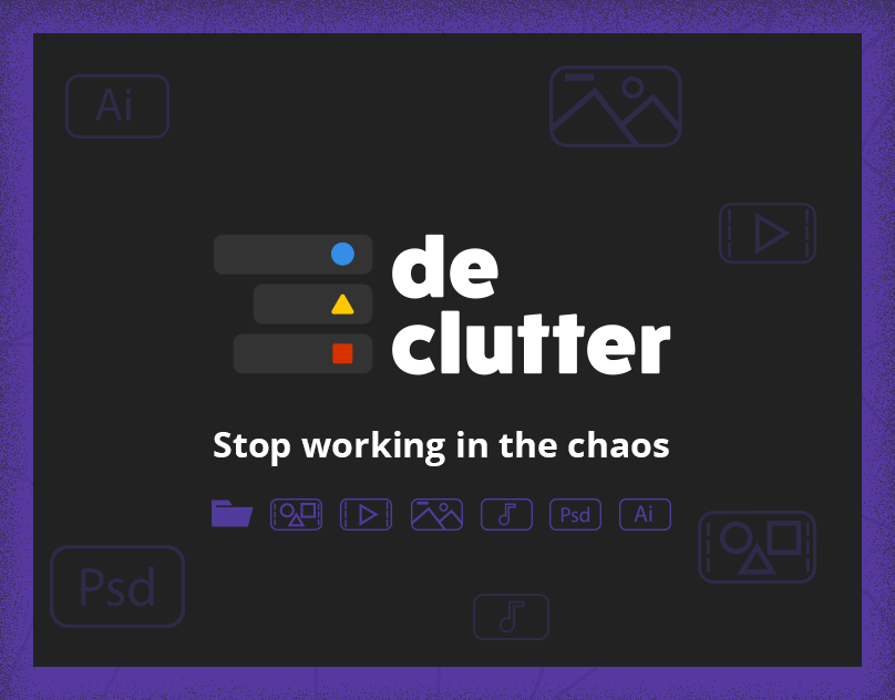 Declutter is an After Effects extension created to organize your project assets into predefined folder structures. You can create and store your own folder structures with their own names, suited to different types of projects or needs. Within each structure, you can customize the parent folders, child folders, folder labels and names, and what type of assets they're going to store. You can be as perfectionist as you want!